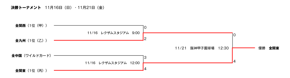 11月14日より四国地区大学準硬式野球連盟主管により開催された「第43回 全日本大学9ブロック対抗準硬式野球大会」は、決勝戦が11月21日に阪神甲子園球場において行われ、全関東選抜が全九州選抜を破り、2年ぶりの優勝により幕を閉じました。